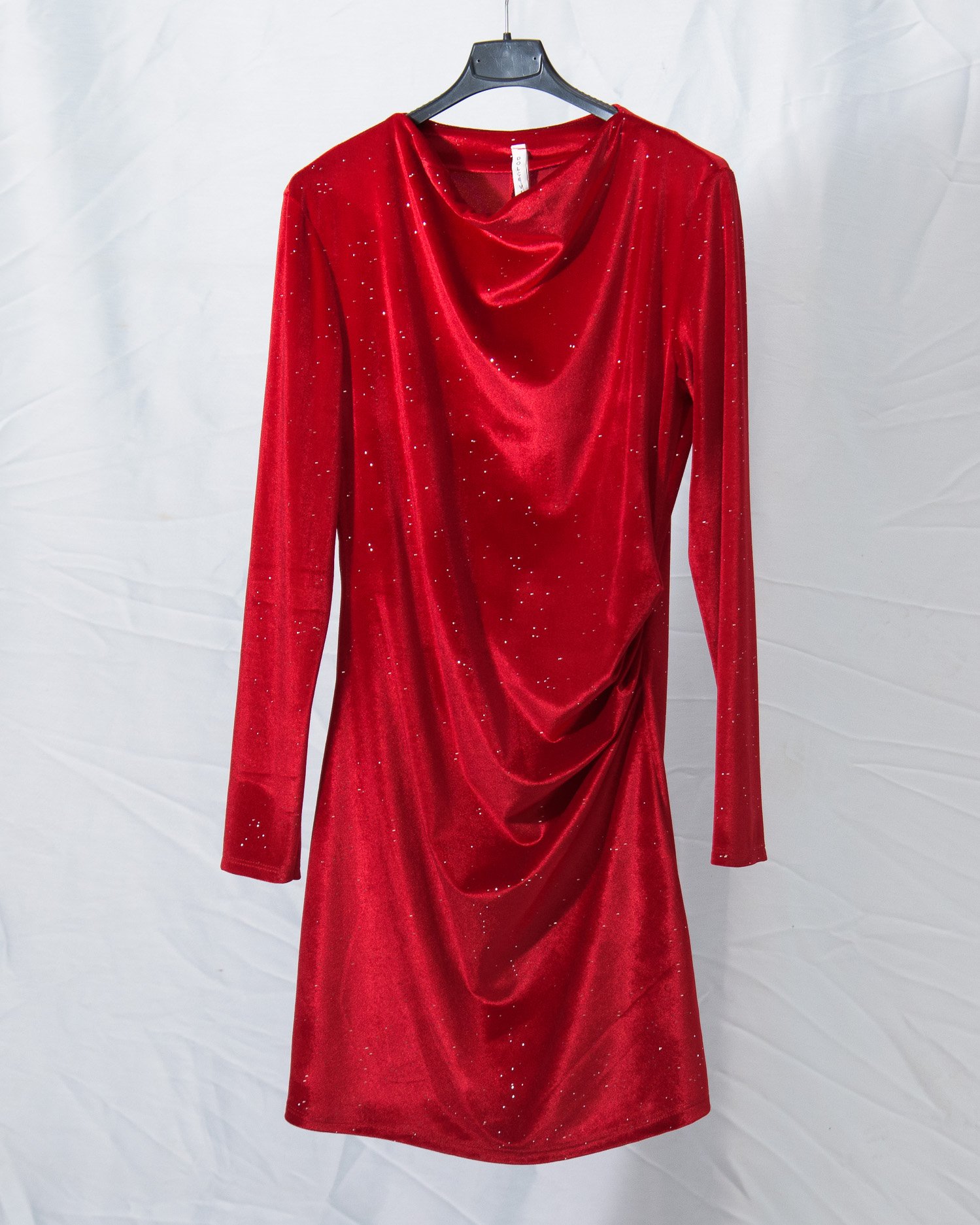 Κόκκινο μίνι βελούδινο φόρεμα με στρας,
